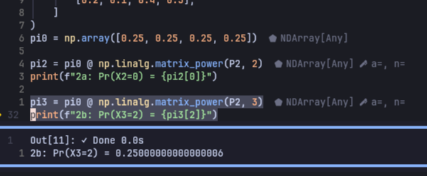 - Demand = 1 → Inventory = 3 → Since 3 > 1, no order → Next state = 3