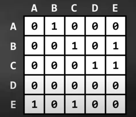 Graph can be represented using an adjacency matrix, by forming a matrix, and assigning each entry as the edge of th and th vertex.
