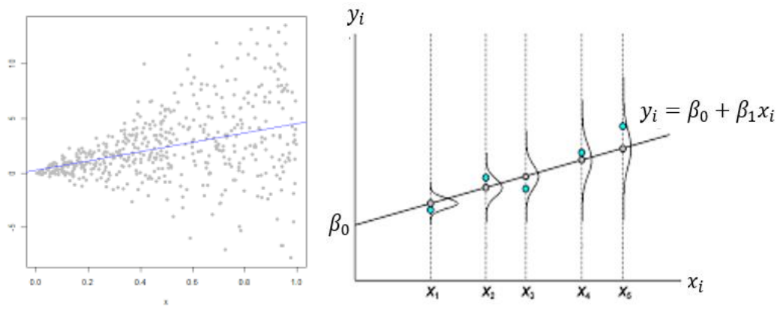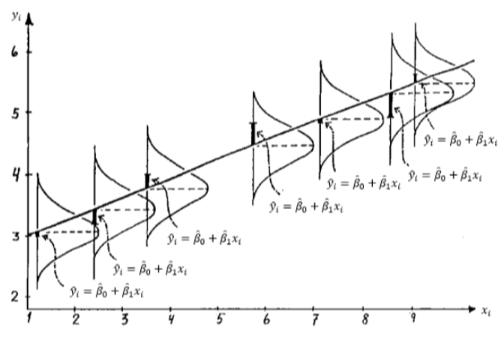 Variation of (and hence, variation of ) is the same across conditions represented by . In simpler terms, regardless of the value of the predictor , the spread (variance) of the error term should remain constant.