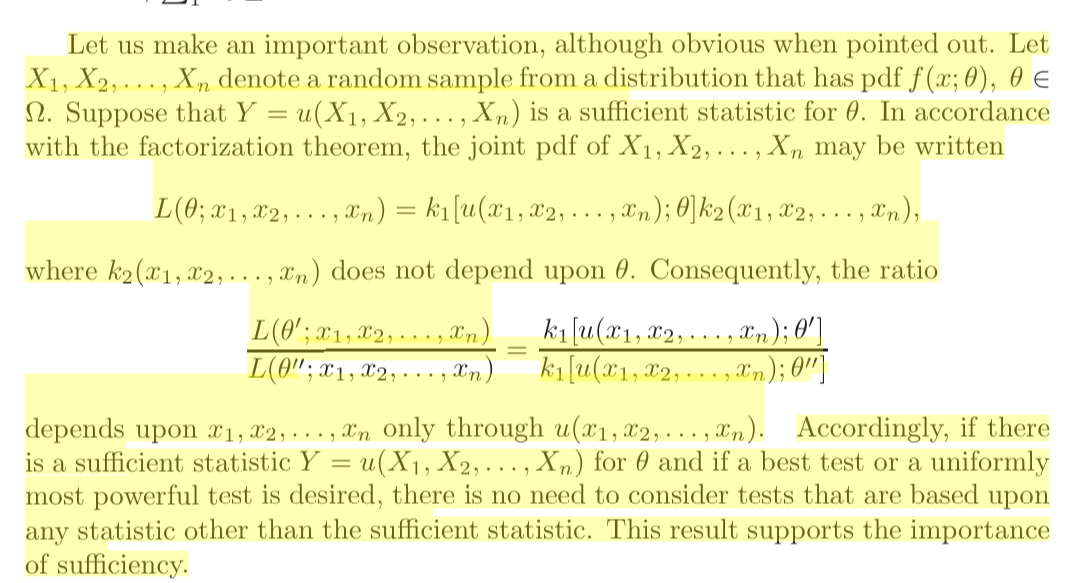 Statistik cukup untuk adalah . UMPT untuk melawan yang berkaitan dengan adalah menolak ketika untuk suatu konstanta .