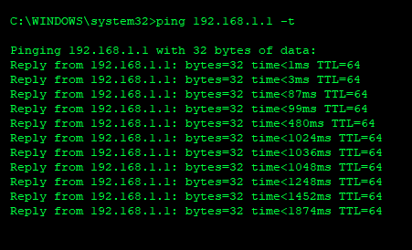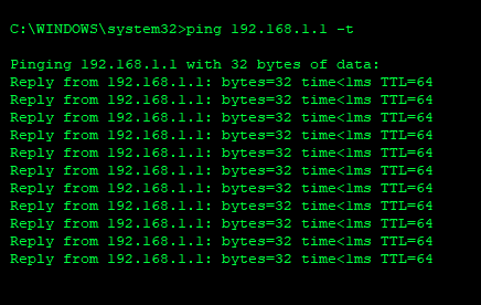 Start a continuous ping session to a device on your network with the command ping (IP Address) -t