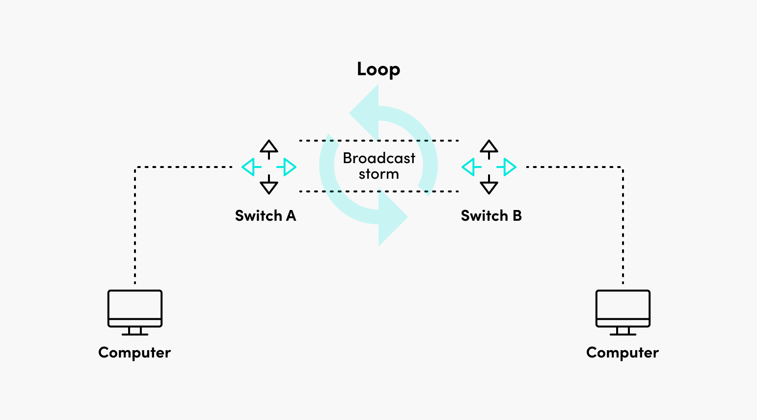 Switching loops occur when network switches are connected together in such a way that network traffic loops around infinitely instead of traversing the hops needed to travel from source to destination.1