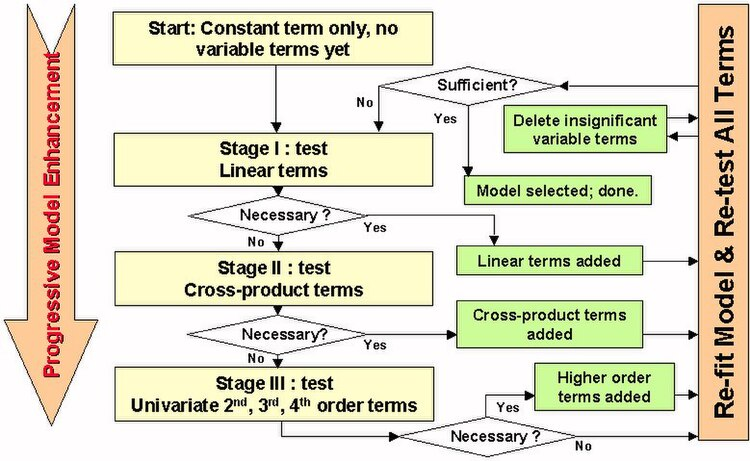 - If is no longer significant, remove . Search a predictor with largest t-statistic in the presence of the term .