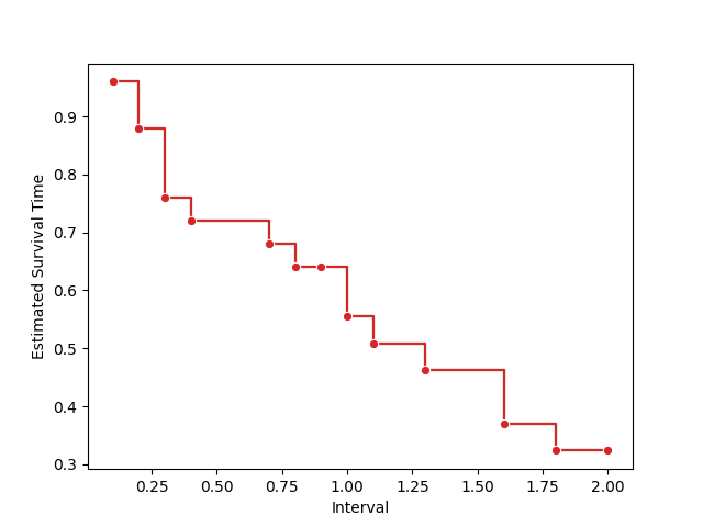 for i, (t, est) in enumerate(zip(ests["Interval"], ests["Estimated Survival Time"])):